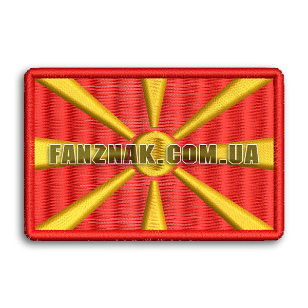 Нашивка, шеврон, патч Северная Македонния (North Macedonia) флаг с зашитым нитью фоном. Пропорции флага 3:2. Вышивка шелковыми нитями на габардине...
